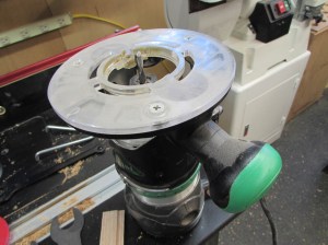 I loaded a 1/4″ spiral bit into my hand router. Guess I am free-handing it after all…
