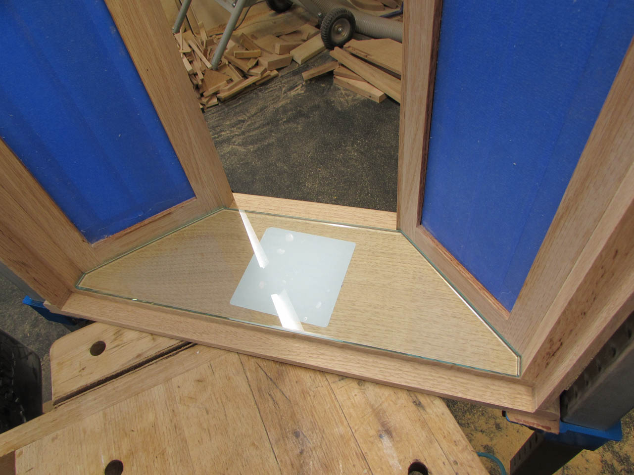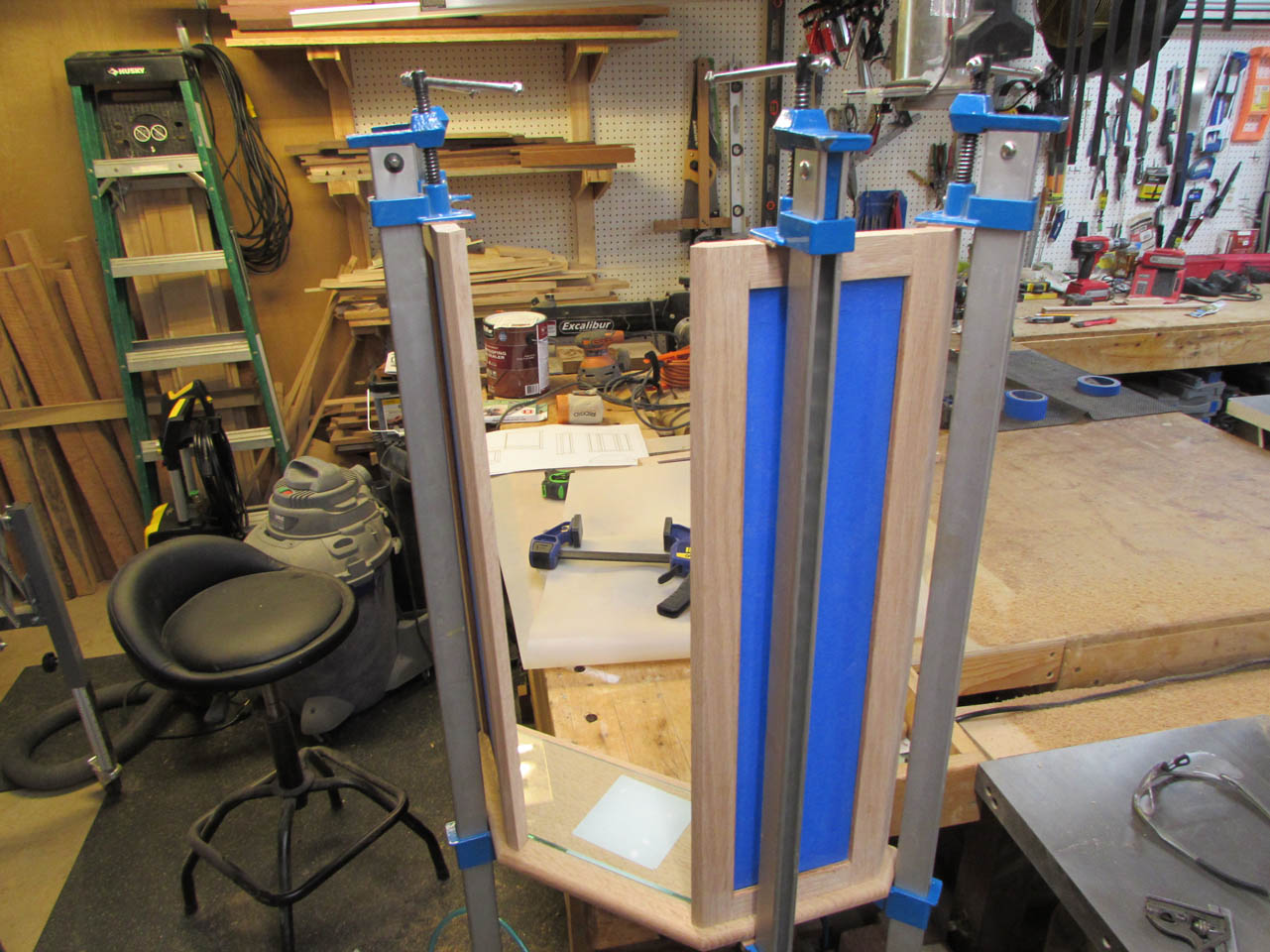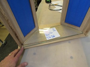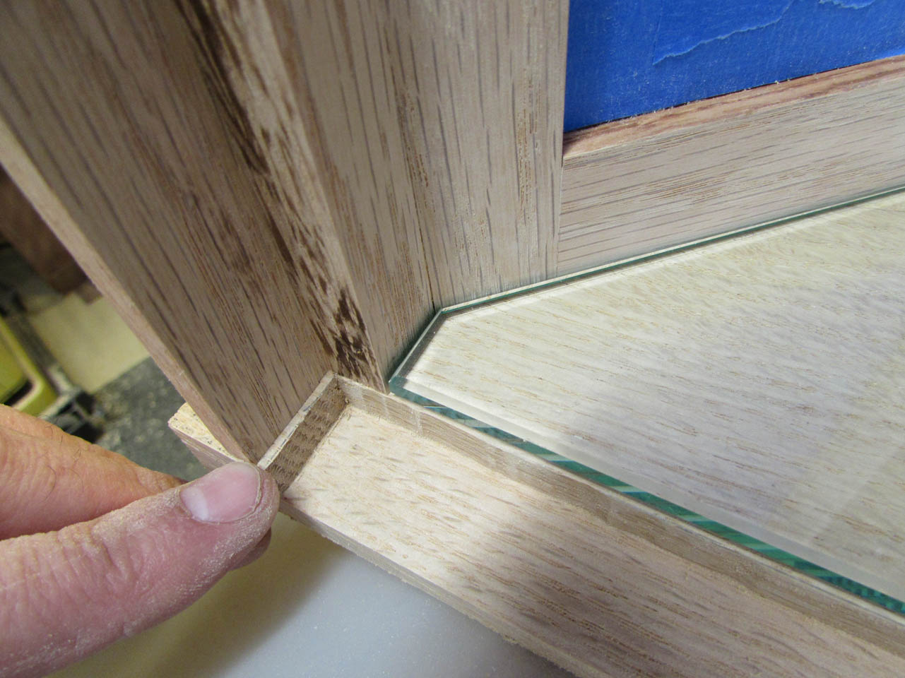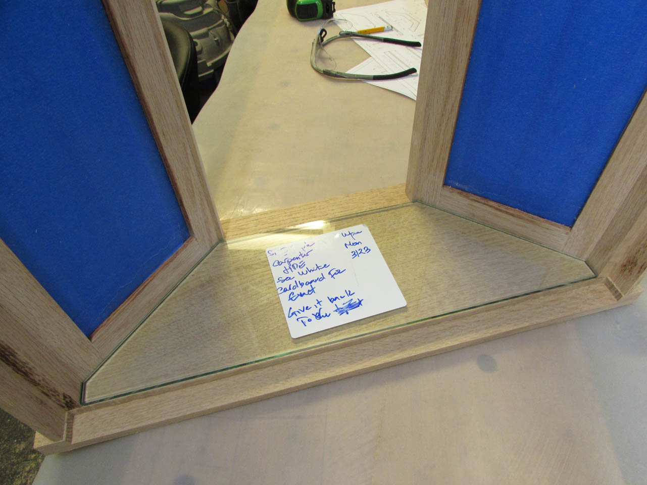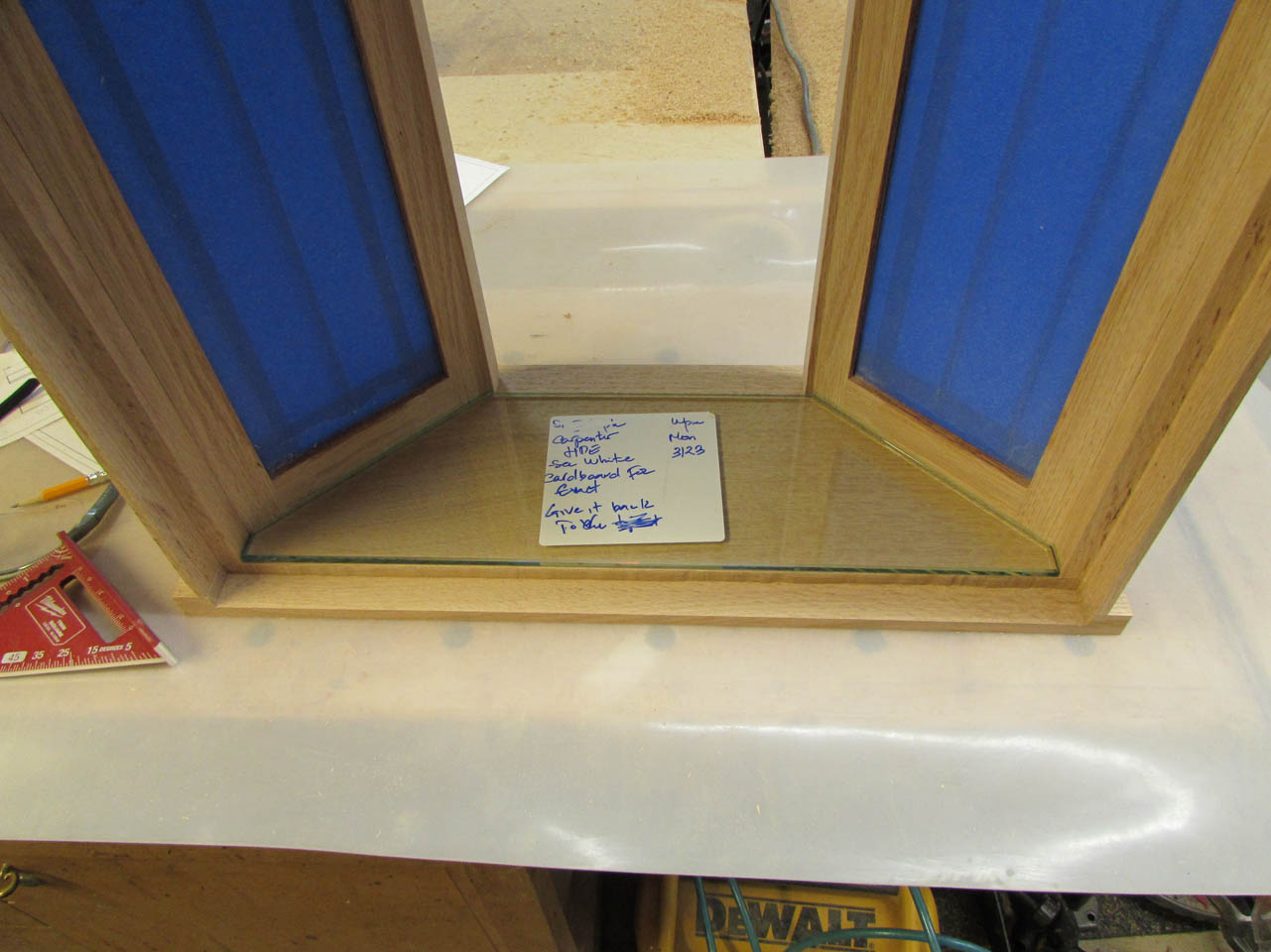 Somehow it was 1/8″ longer than planned. Probably because the edges were beveled and the glass cutter did not account for the 1/16″ bevel all the way around.