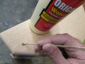 After setting the screws in place, I masked off around my marks to prevent glue from getting on the surface.