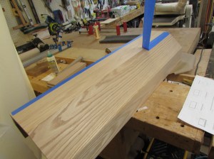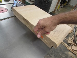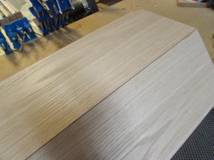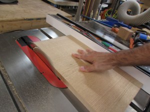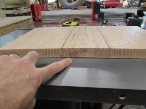 I noticed that the base cap bent up in the middle slightly. My jointer must have been off 90° slightly. I will have to fix that. Since the board was already down to the correct thickness, I am not going to bother trying to fix it. I wasn’t really happy about the dark lines anyway.
