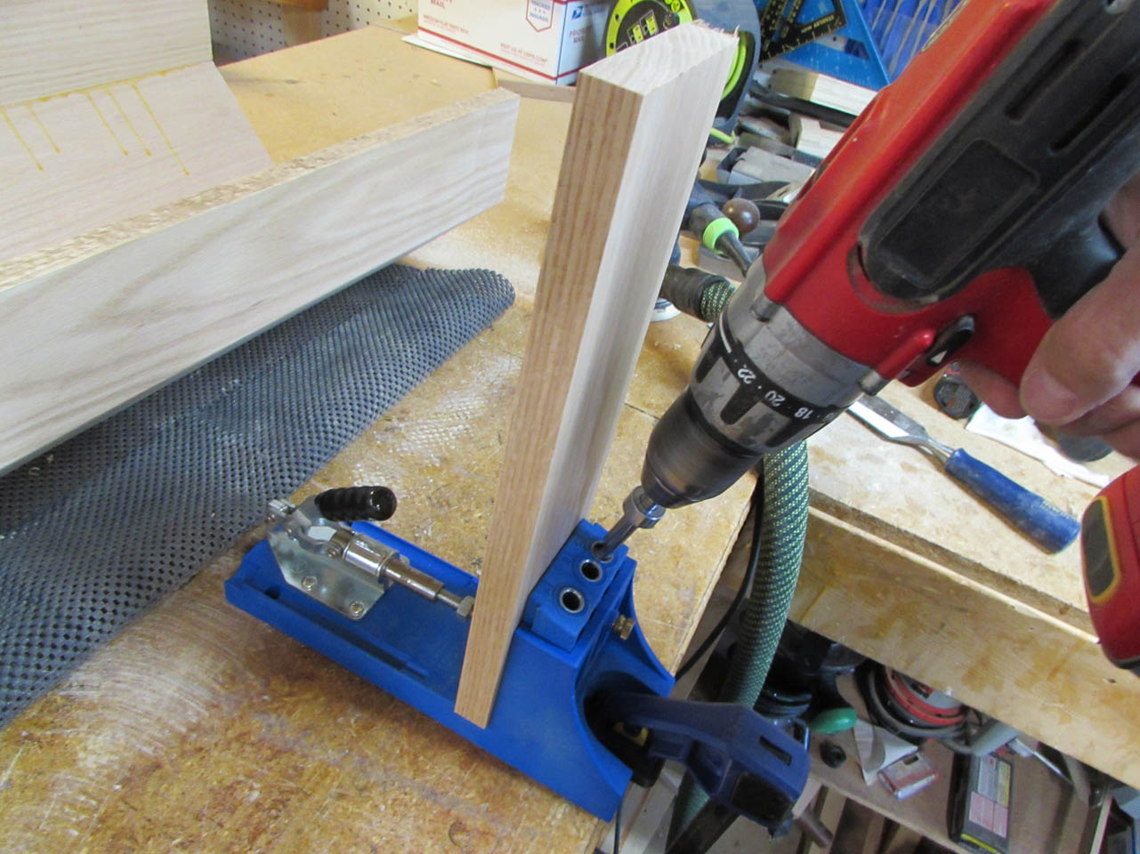 I decided that I would like to install my cross braces in the back of the column but an end-grain glue-up would be useless. Since it is in the back, against the wall, I figured pocket holes would work the best.