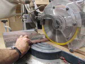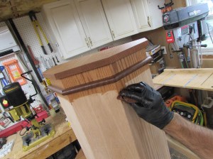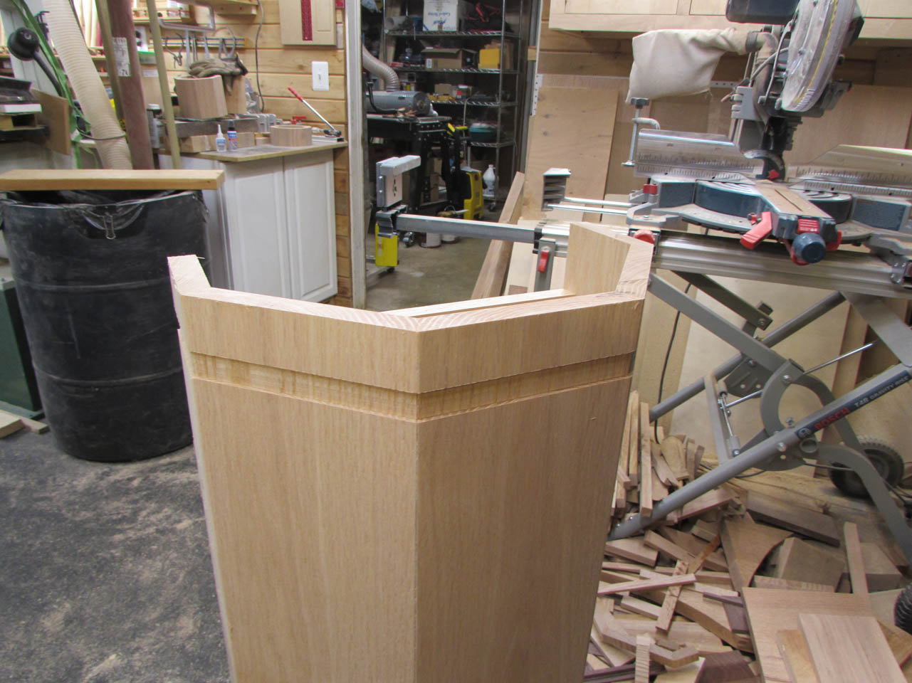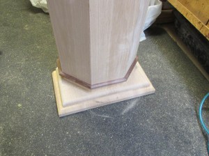 I have just enough walnut trim, left over from the last column, to complete this one. This column is large enough that I can cut the trim pieces on the miter saw with the blade set at 22.5°.