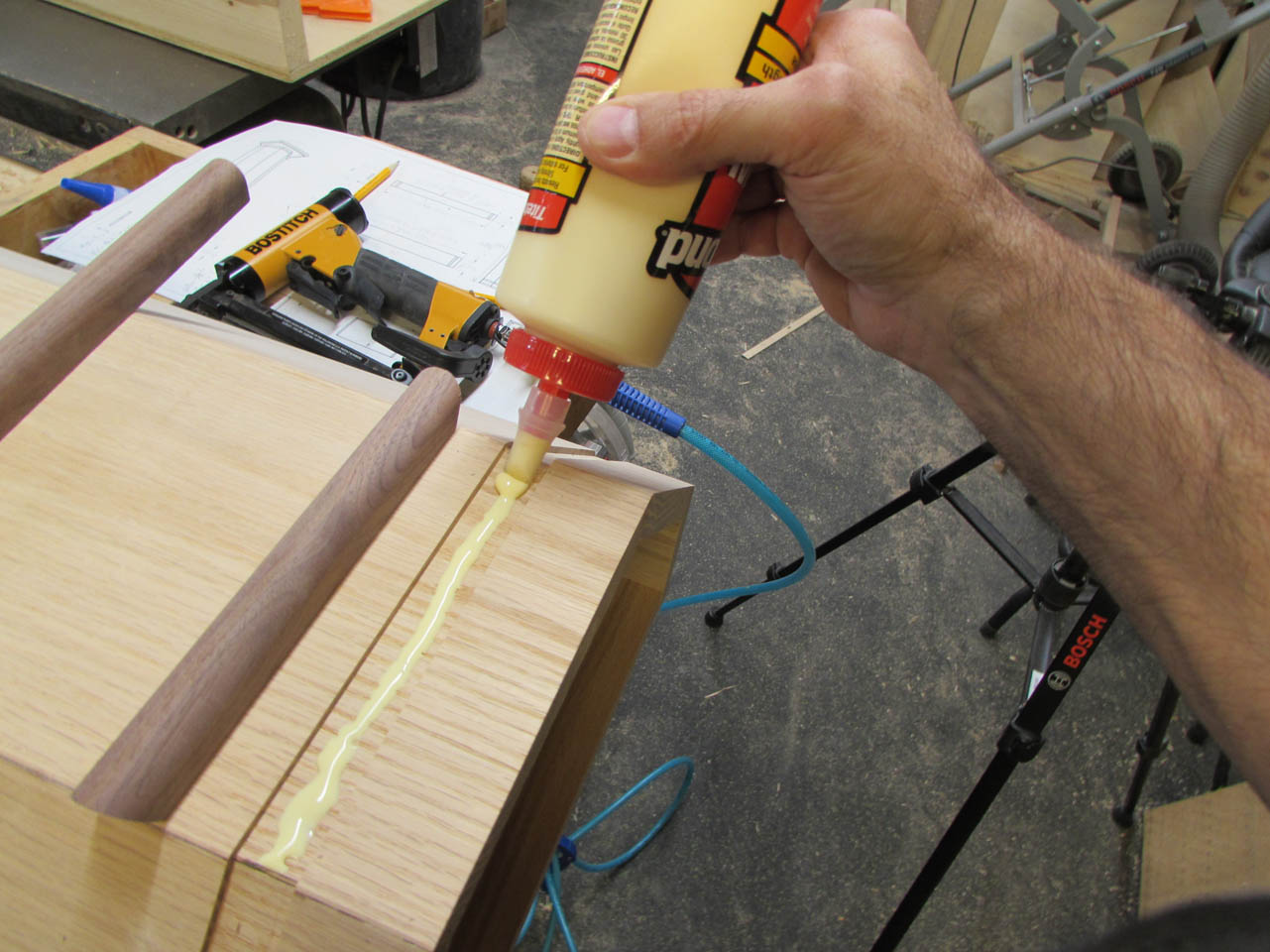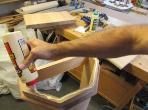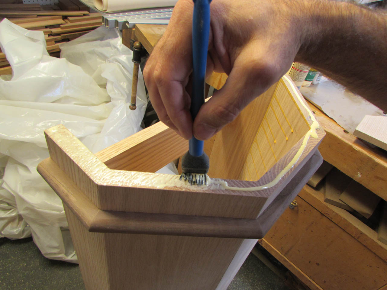 Then I spread wood glue along the bottom surface of the base cap and set the base in place.