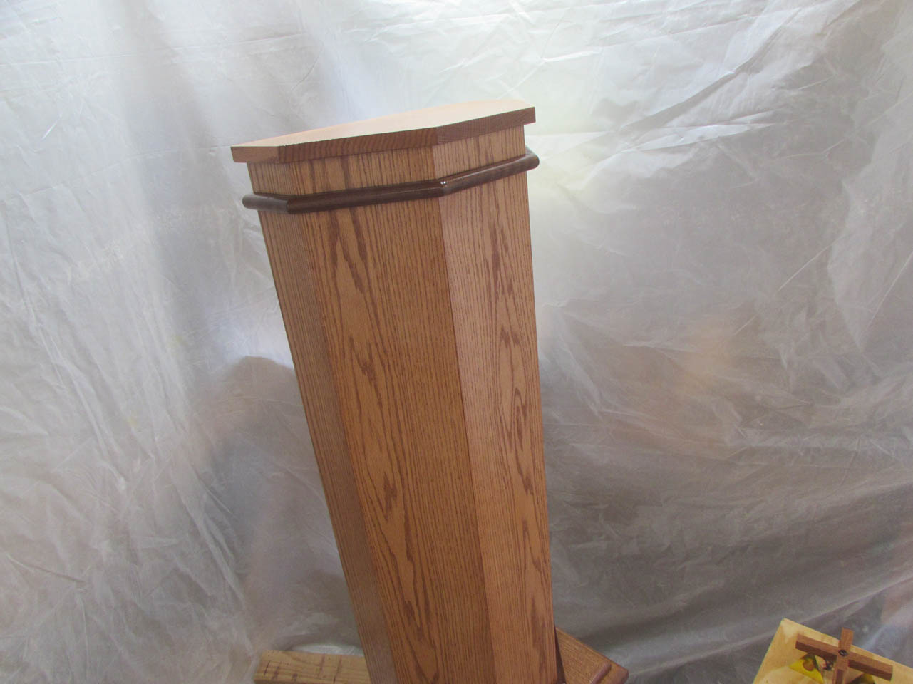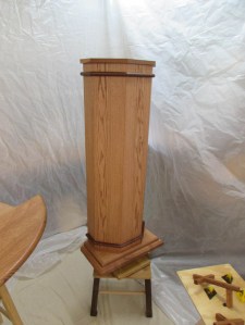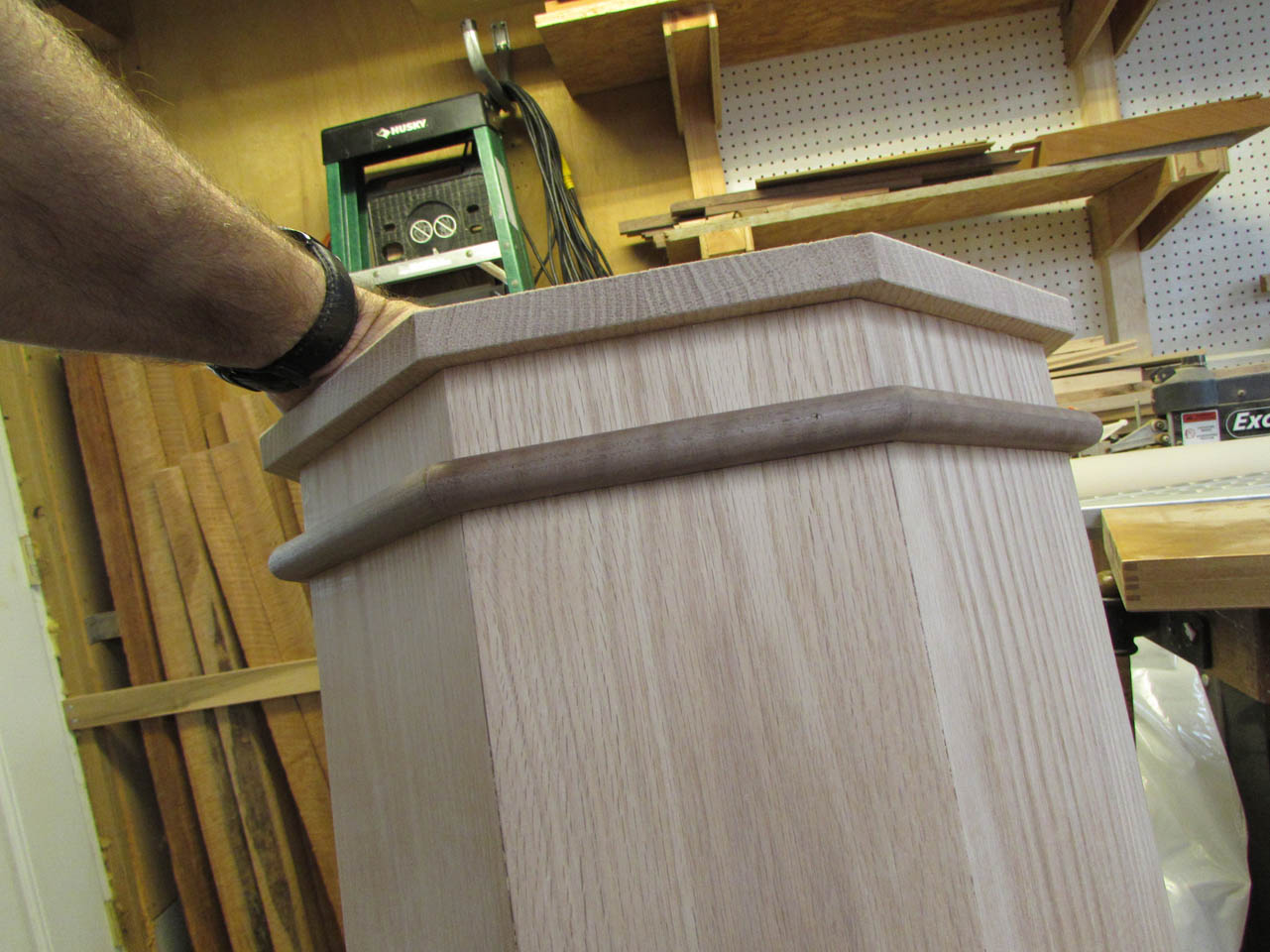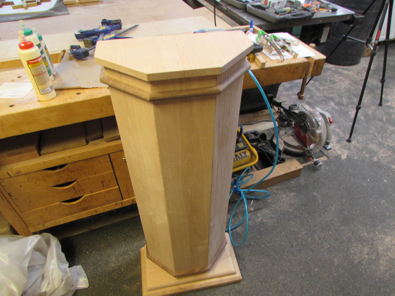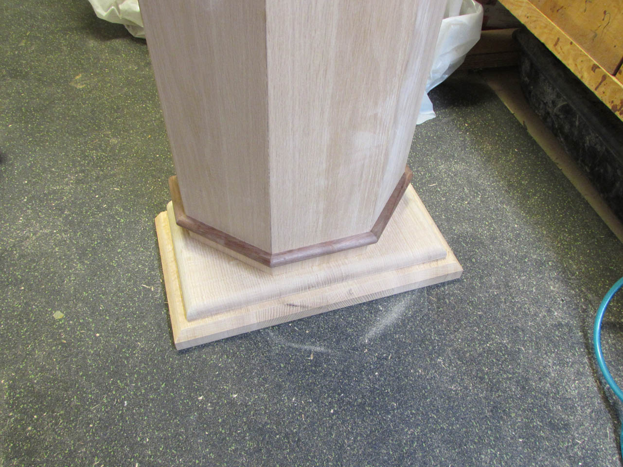 I got to talk to the contractor who is laying the tile in the chapel and he gave me a final dimension for the height of the tabernacle stand. I need a total height of 45″. My current column, fully assembled, is 46-1/2″ tall. I need to lose 1-1/2″ from the column section.