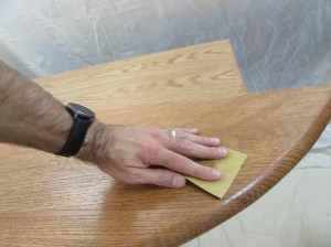 Before the second coat goes on, Everything needs to be sanded down with 400 grit paper to remove any raised grain or dust that may have settled on the surface.