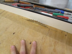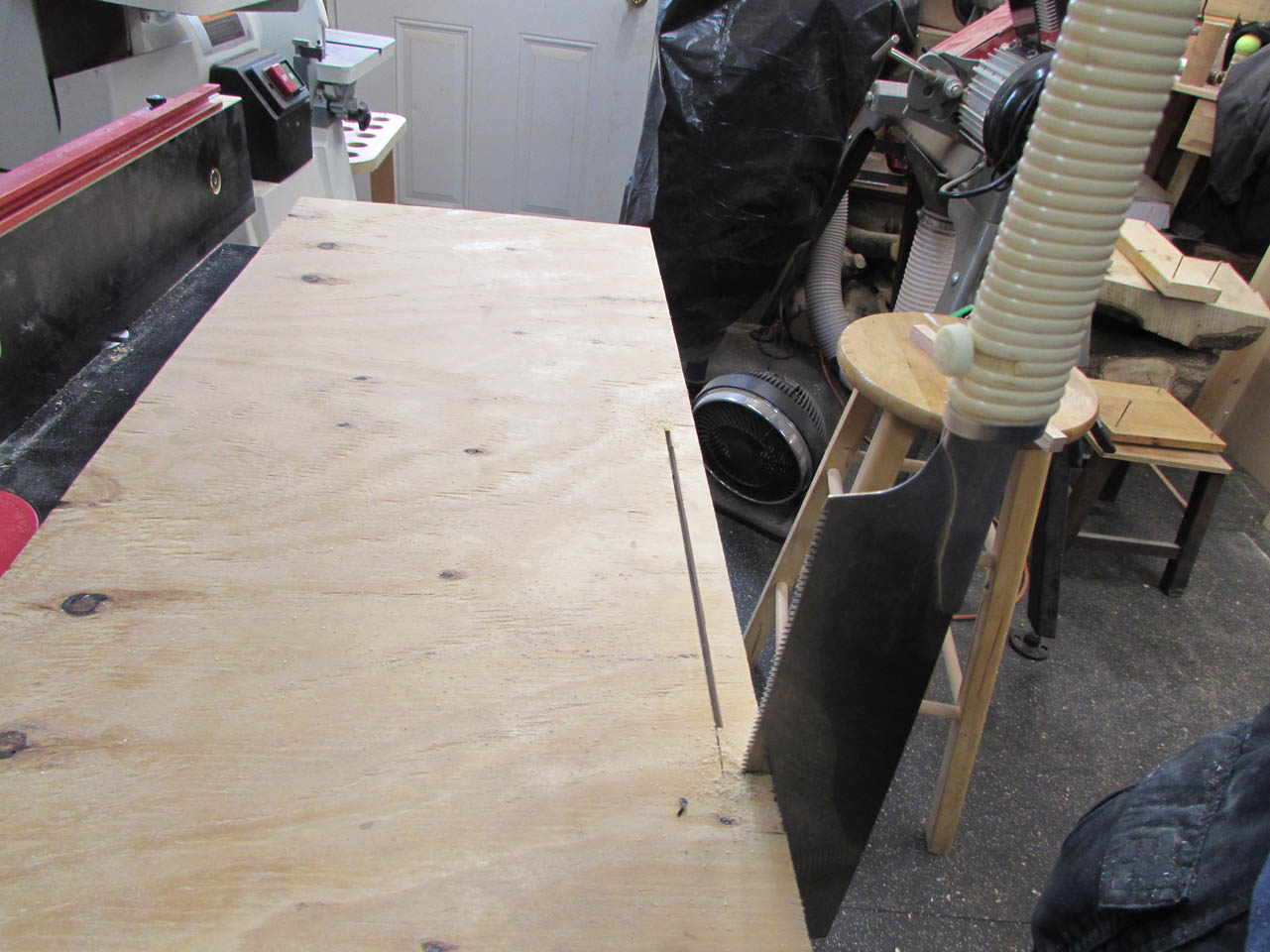 I measured the length of the keyhole slot to be about 1″ long so I made the notch in the plywood 3/4″ x 10″.