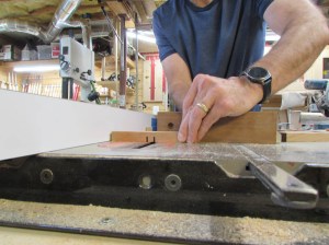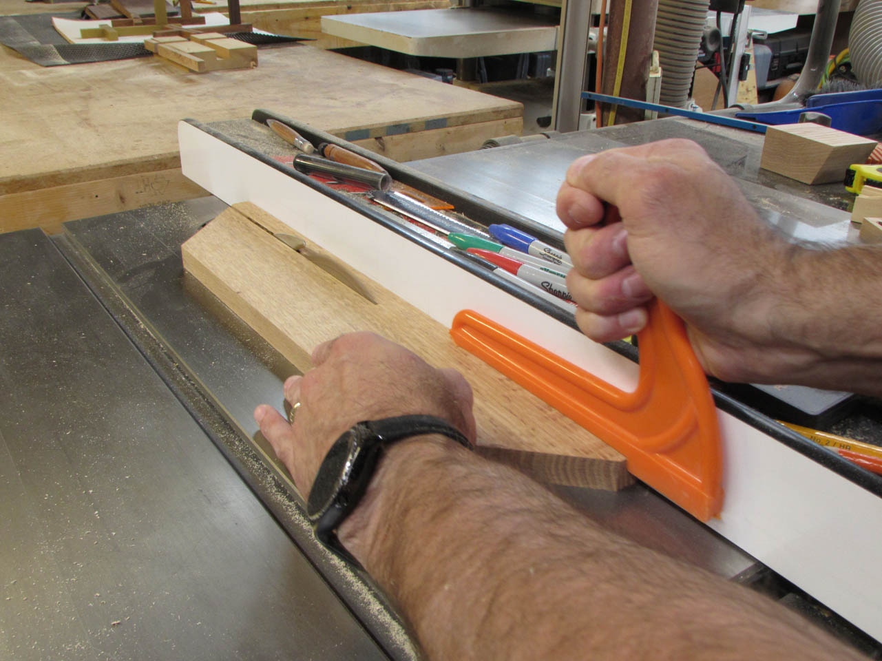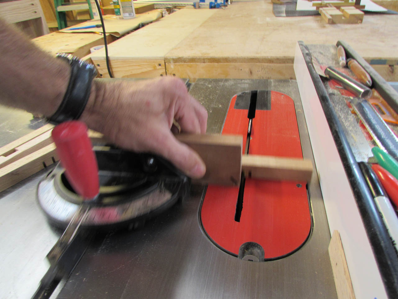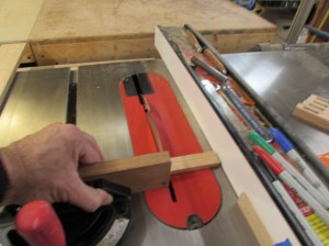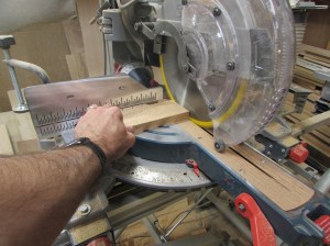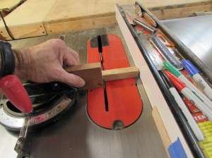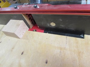 I used the miter gauge to cut the support beam, for the candle, to length.