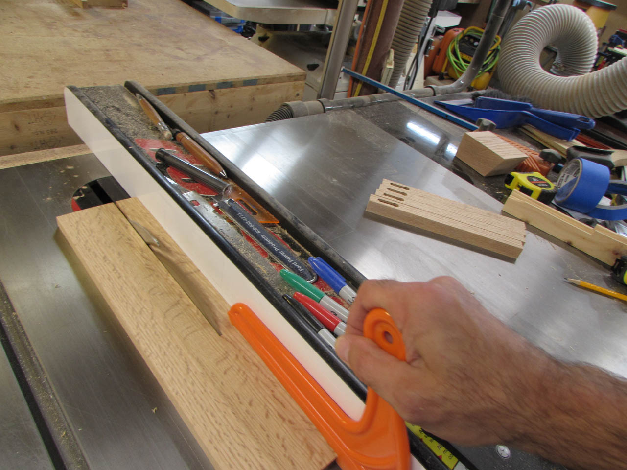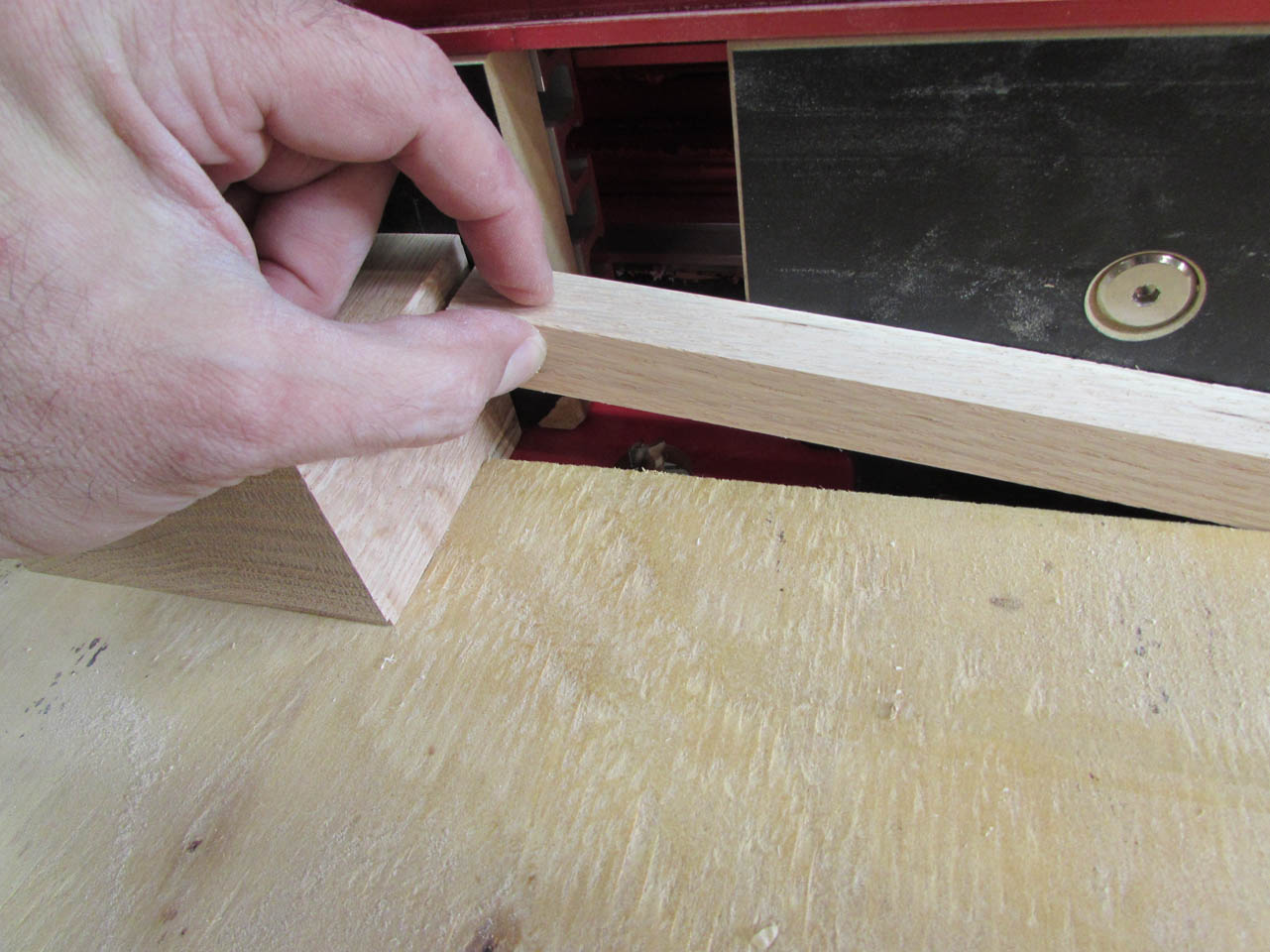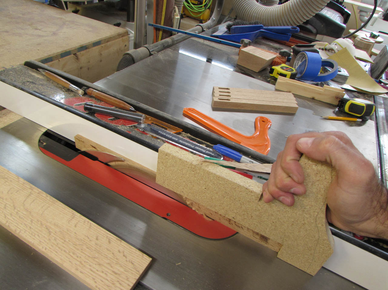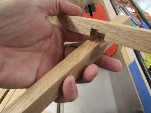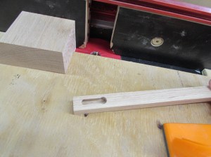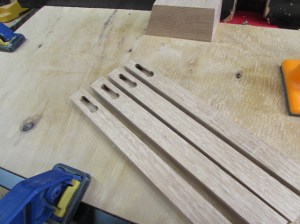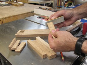 I started by cutting some 3/4″ x 3/4″ oak strips from some scrap quarter-sawn oak, left over from the tabernacle stand.