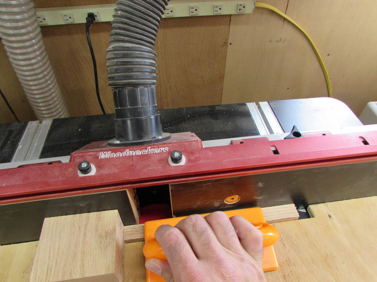 I set up my bit and my jig. After a couple of test cuts, I feel confident this may work.
