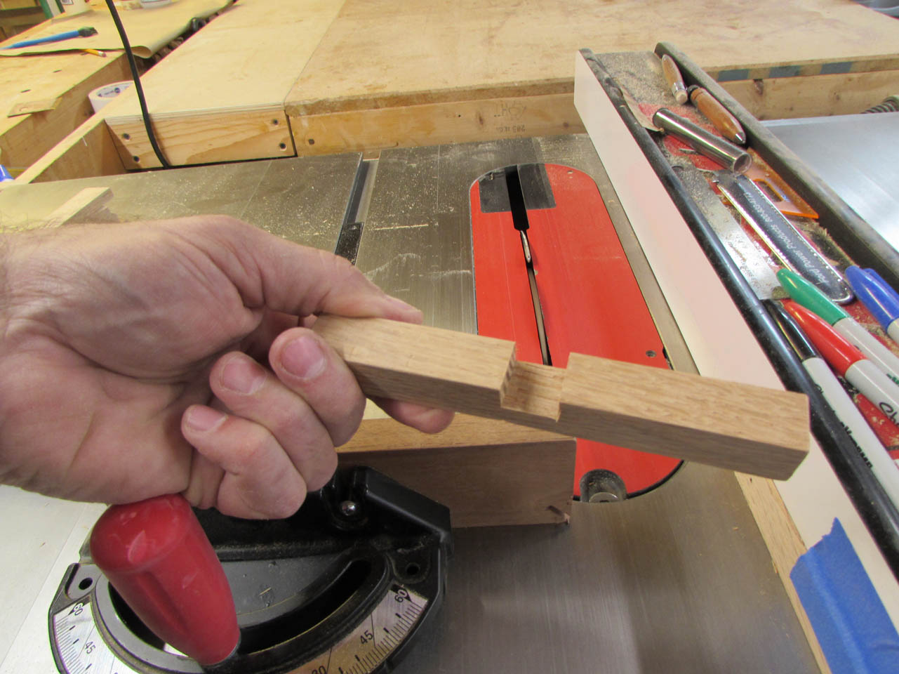 I used my miter gauge, along with my fence to locate and cut the edges of the notches in the cross.