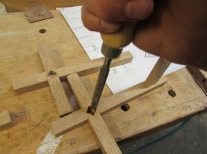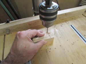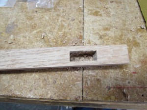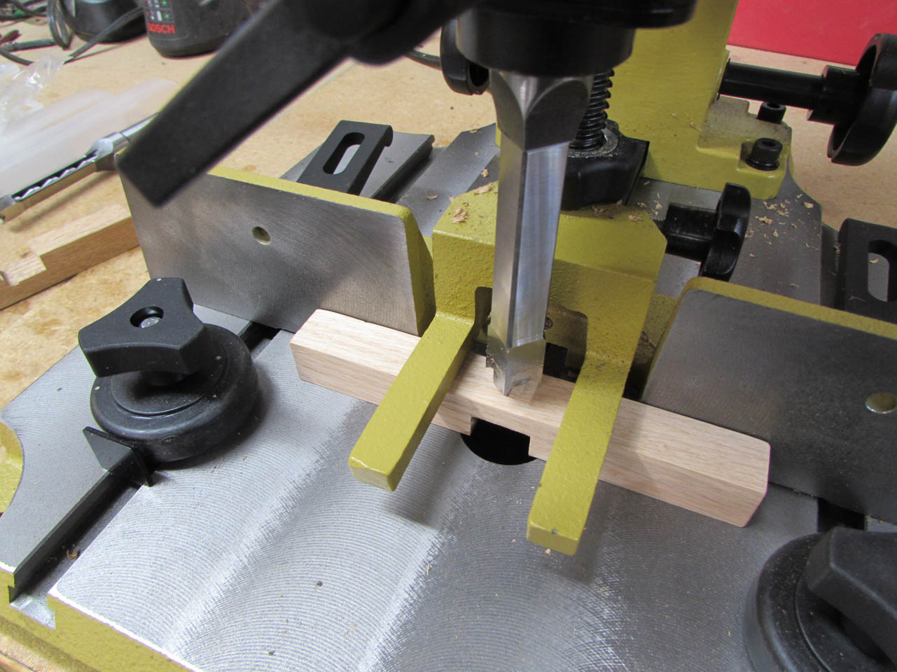 I used the 1/2″ mortising bit to drill a 1/2″ square hole in each arm.