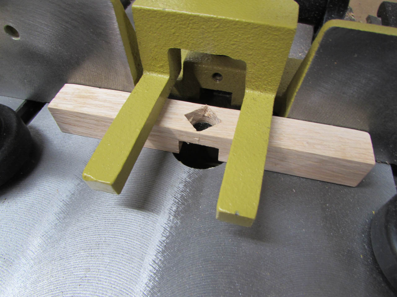 I marked the center of the arm of the cross and clamped it into the mortiser.