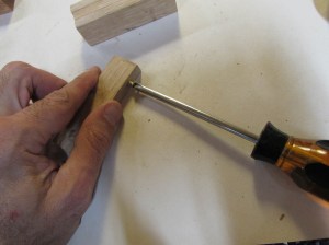 Before assembling the candle support, I pre-drilled a pilot hole for the mounting screw. This would be difficult to drill once everything was assembled. I also screwed a wood screw into the support to pre-thread the holes. This will hopefully prevent any stripping of the screw when I install the candle holder after everything is finished.