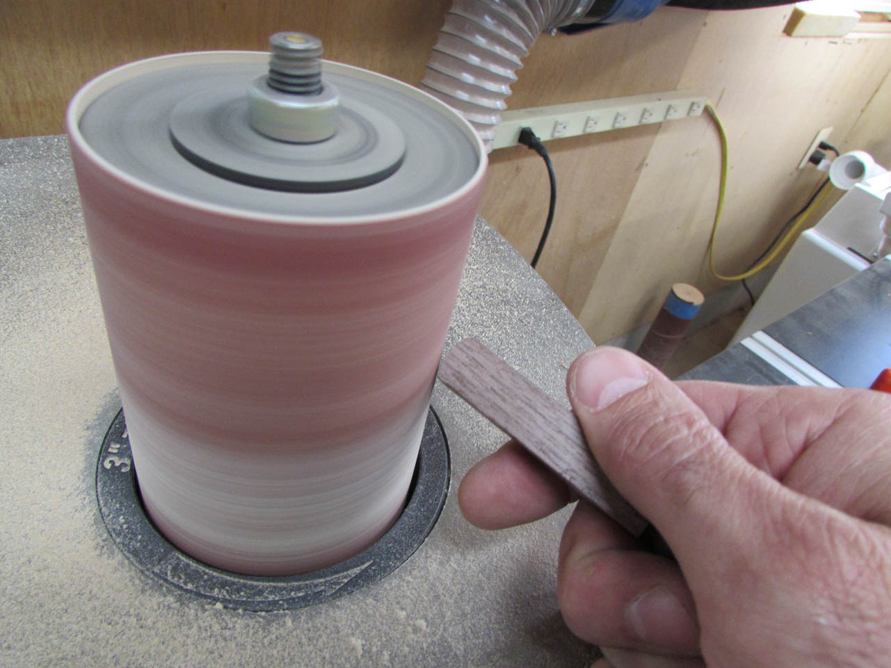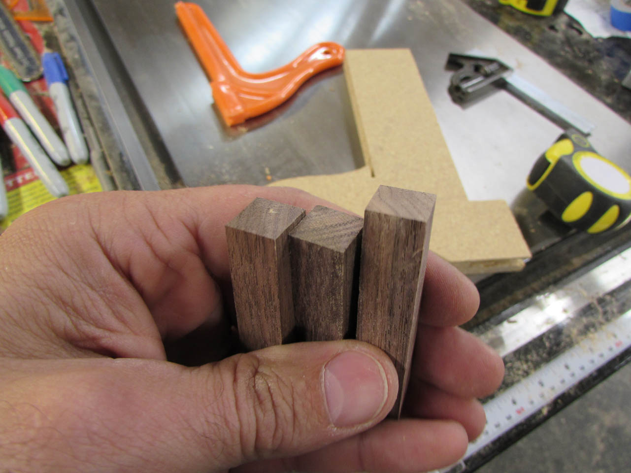 I started by cutting some pieces of 1/2″ x 1/2″ walnut. I eased the edges on the spindle sander, but it did not look nice enough.