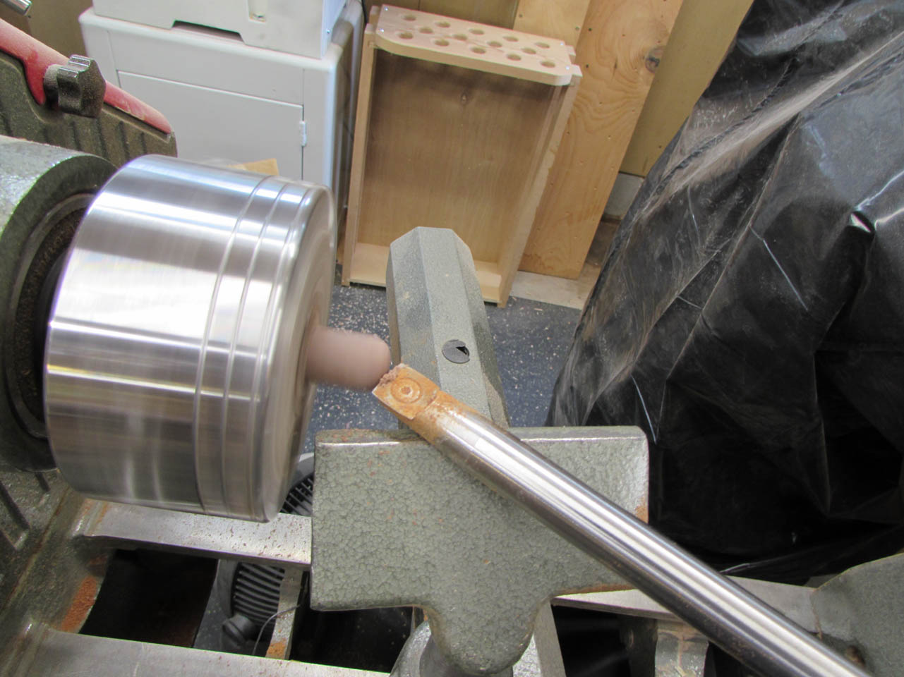 I decided to load the pieces in the lathe and cut a small dome on the end.
