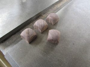 After sanding, I cut the rounded nubs off at about 3/8″ long.
