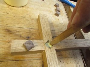 I applied wood glue carefully at each of the joints and pressed the pieces together.