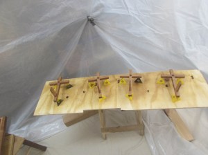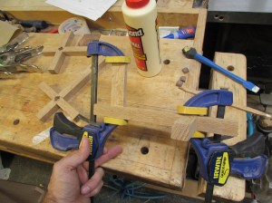 I placed a clamp on the center of the cross and the support arm, and left it to dry.