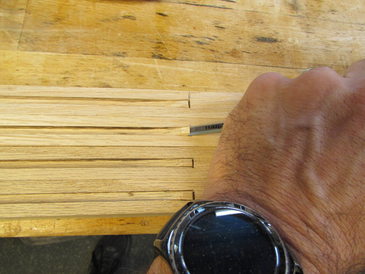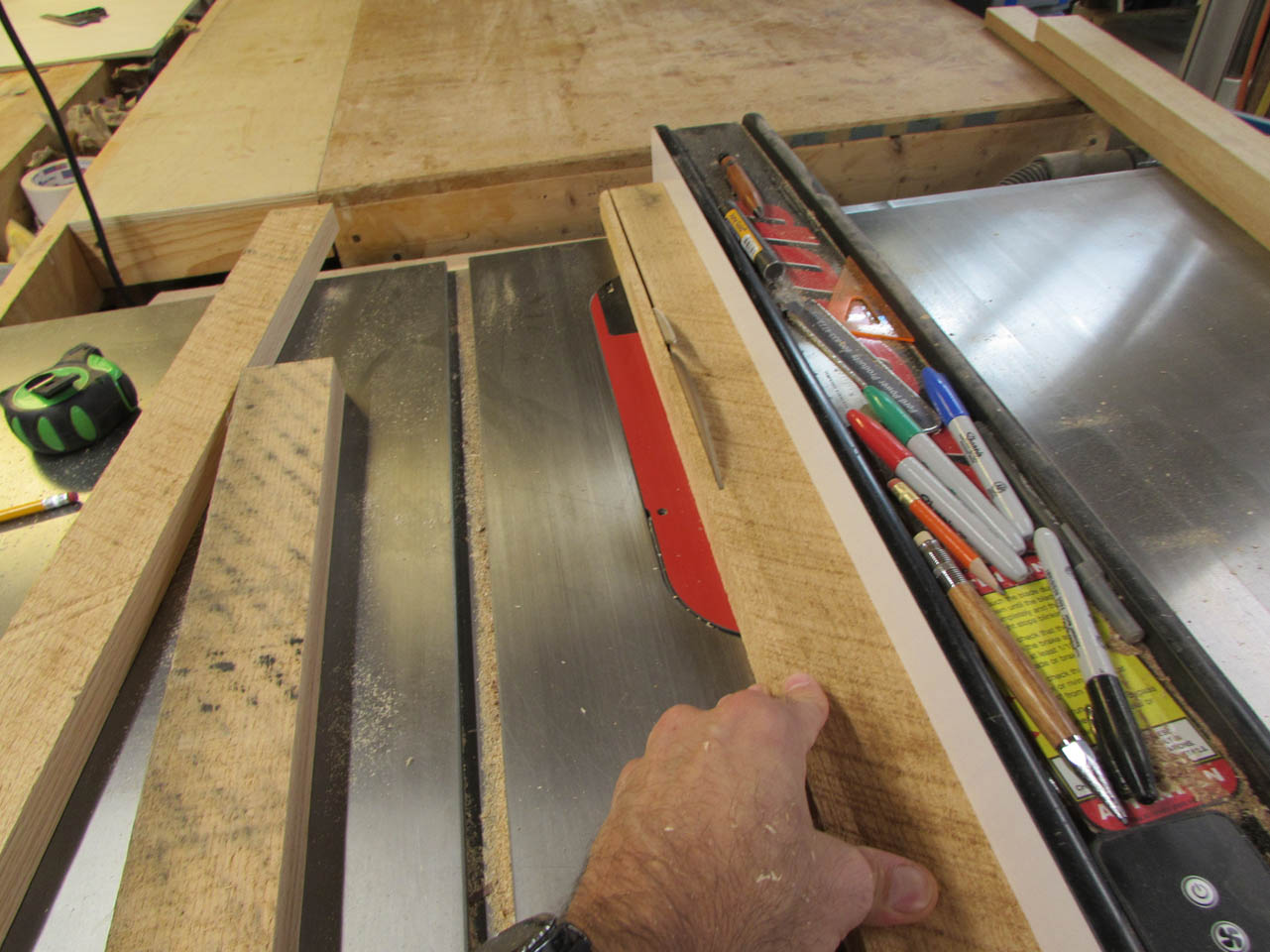 I ran the boards through the blade until my mark reached the tape and stopped.
