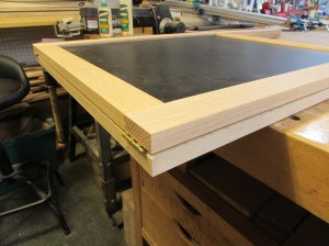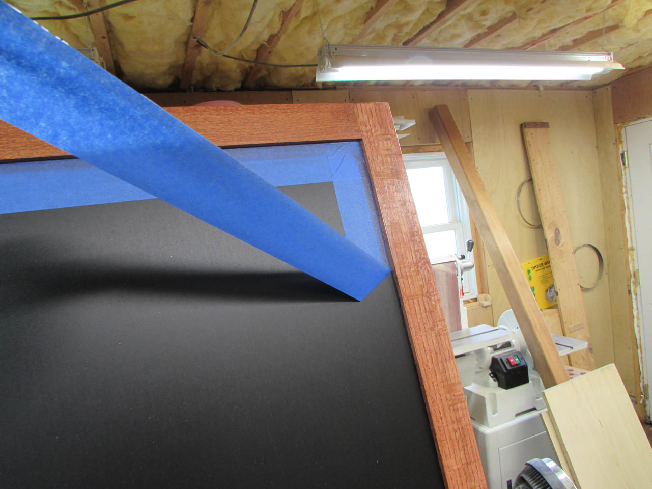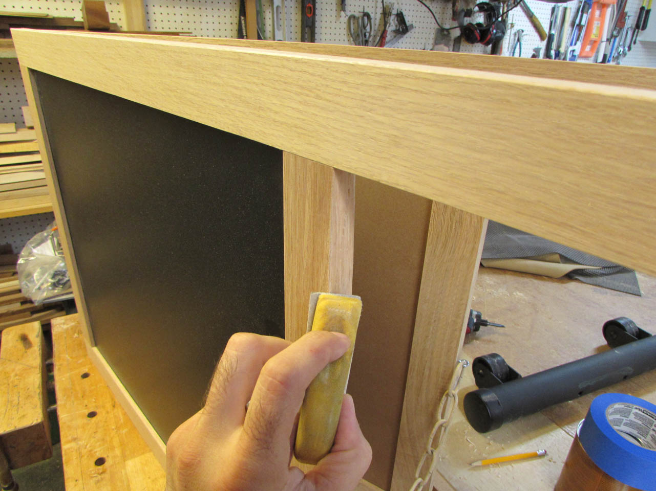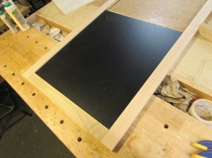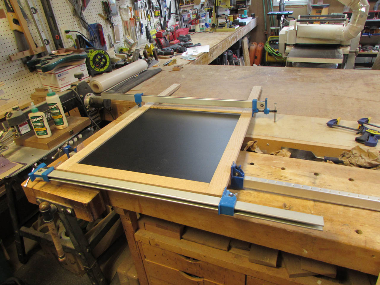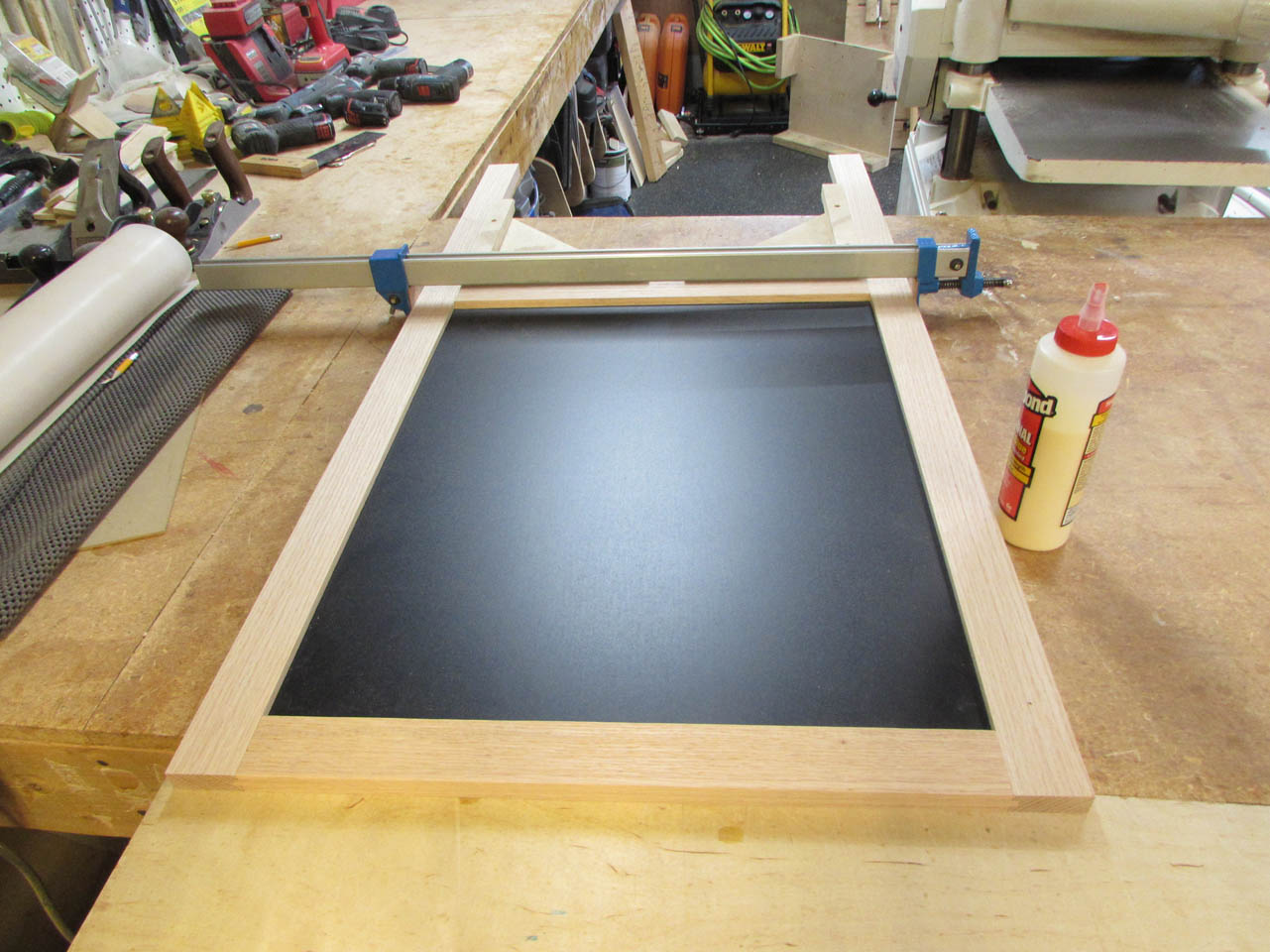 Once that side was squared up and clamped, I slid the chalkboard into place.