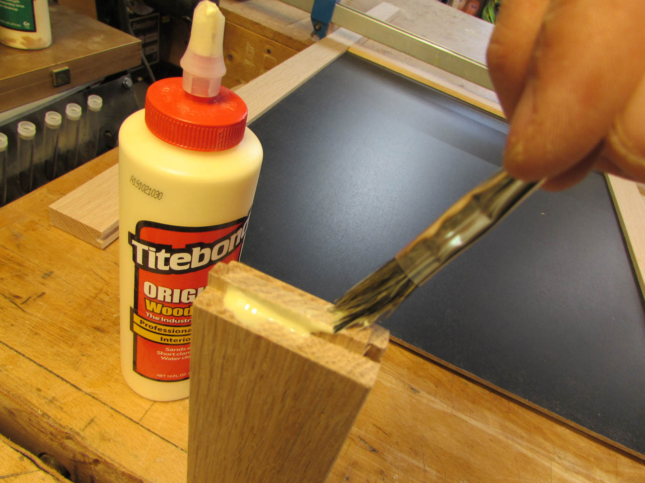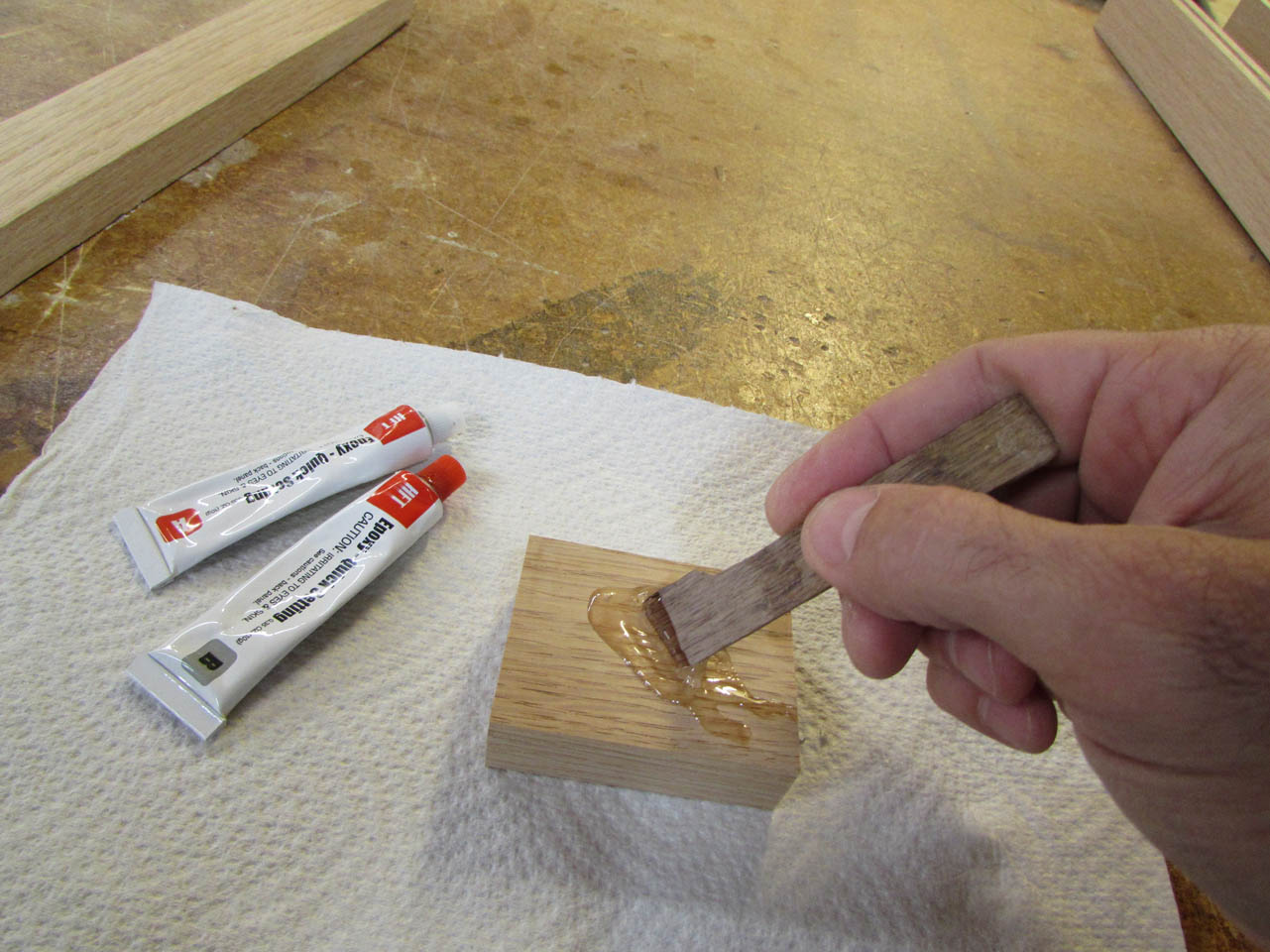 After a successful dry-fit, I mixed up some epoxy to apply to the hand-cut end of the dado.