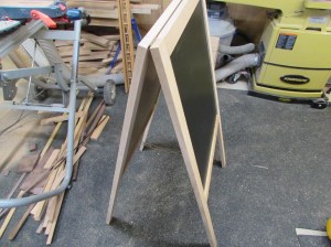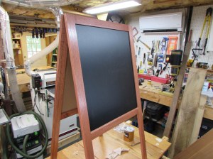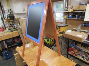And we now have a chalkboard easel that will display messages at the reception. Also, it can be tucked into a closet and brought out in a few years for grandchildren to play with… 😉