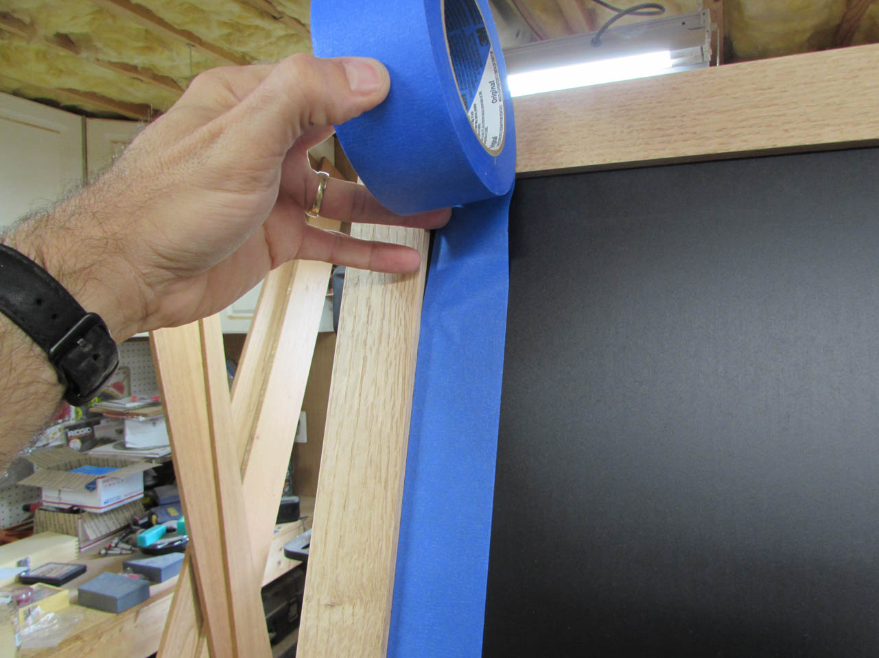 I installed the chalkboard in two of the legs to get a final measurement for the length of the horizontal pieces.