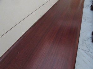 The pews in the church appear to be made from a straight-grained, red stained, mahogany. I intend to use a similar-grained Spanish cedar to replicate the look while maintaining a lighter weight.
