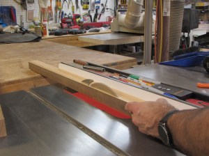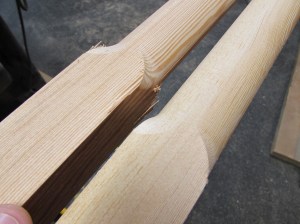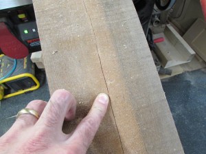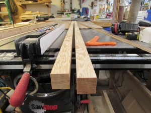 I have a very special piece for the poles. It is an extremely old growth piece of Douglas fir that has a split down the center. The split makes this board useless for most projects but the perfect size for these 1-1/2″ square poles. The tight, straight grain will ensure that the poles will not be likely to warp over time.