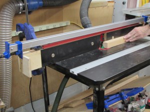 I installed a 3/4″ round-over bit in my router table and a stop, at the end of my fence that will allow me to cut a radius on all four sides of the last 24″ of each pole.