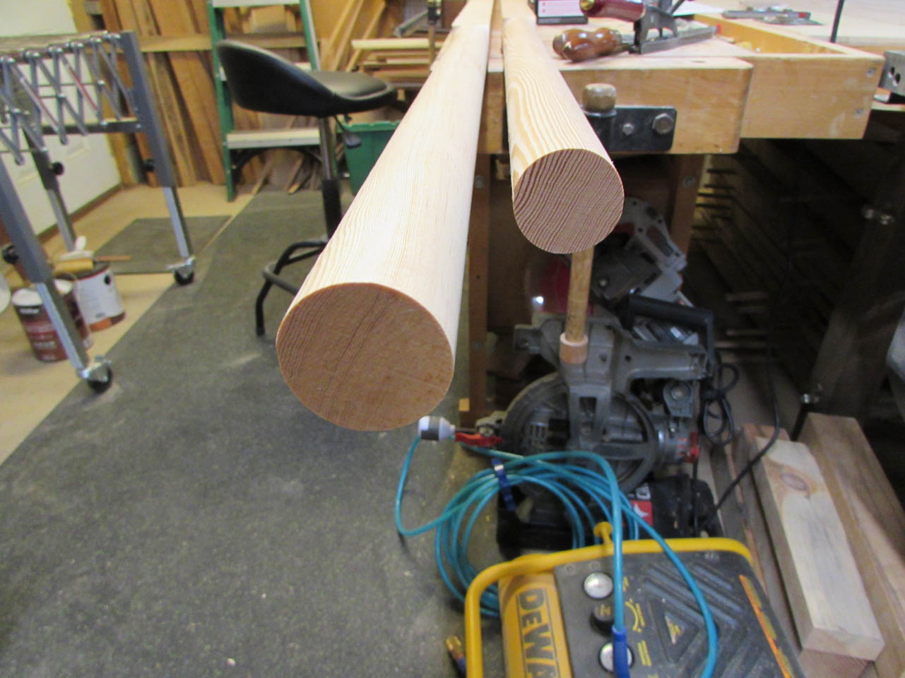 This gives me two, 7′ long poles that are 1-1/2″ square.