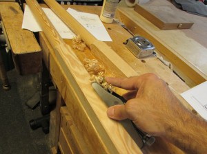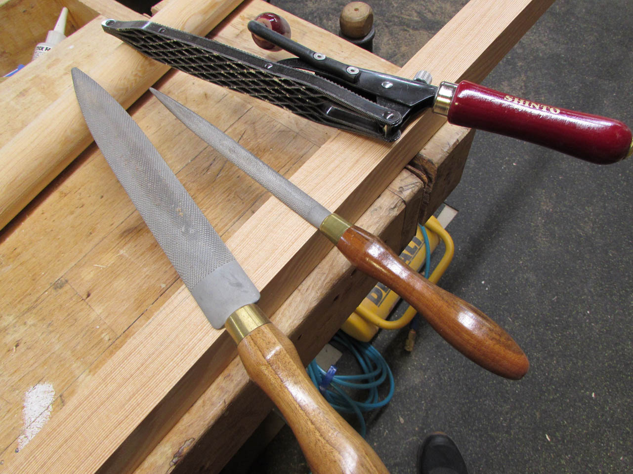 To clean this up, I need to resort to hand tools. I get out a few rasps and determine that my 10″ cabinet rasp is the right size and shape for the job.
