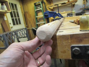Once the top half is shaped, I flip the pole over and do the bottom half. It takes about a half an hour per end to get all of the hand-shaping done.