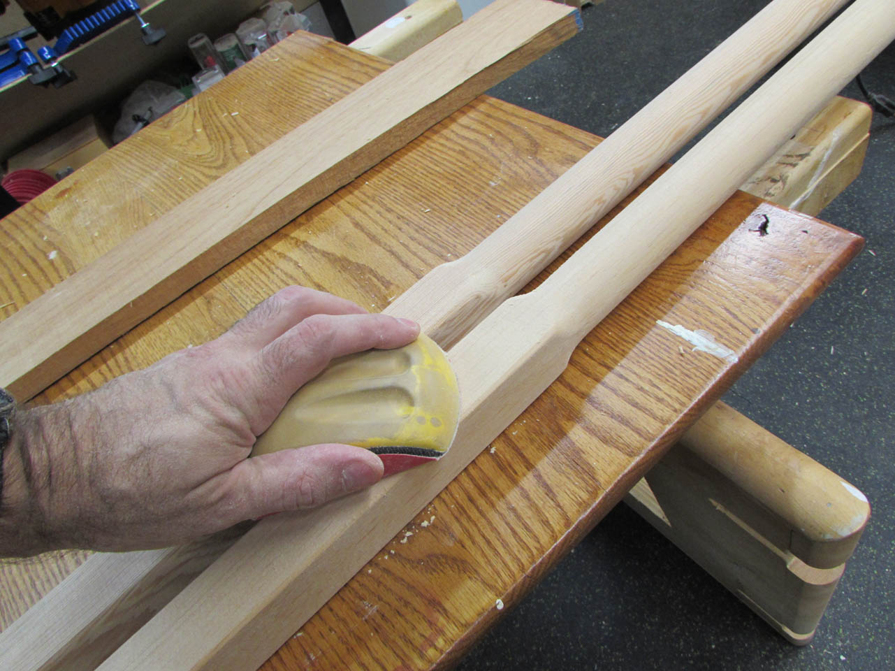 Then I do a thorough hand sanding and the poles are done for now.