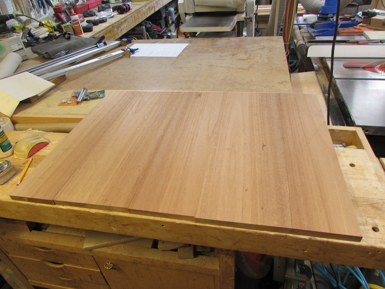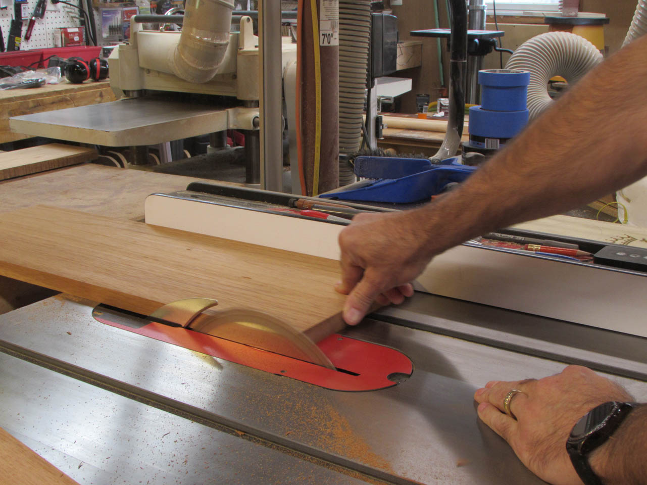 I jointed one edge of each board, then cleaned up the opposite side by cutting it off on the table saw.
