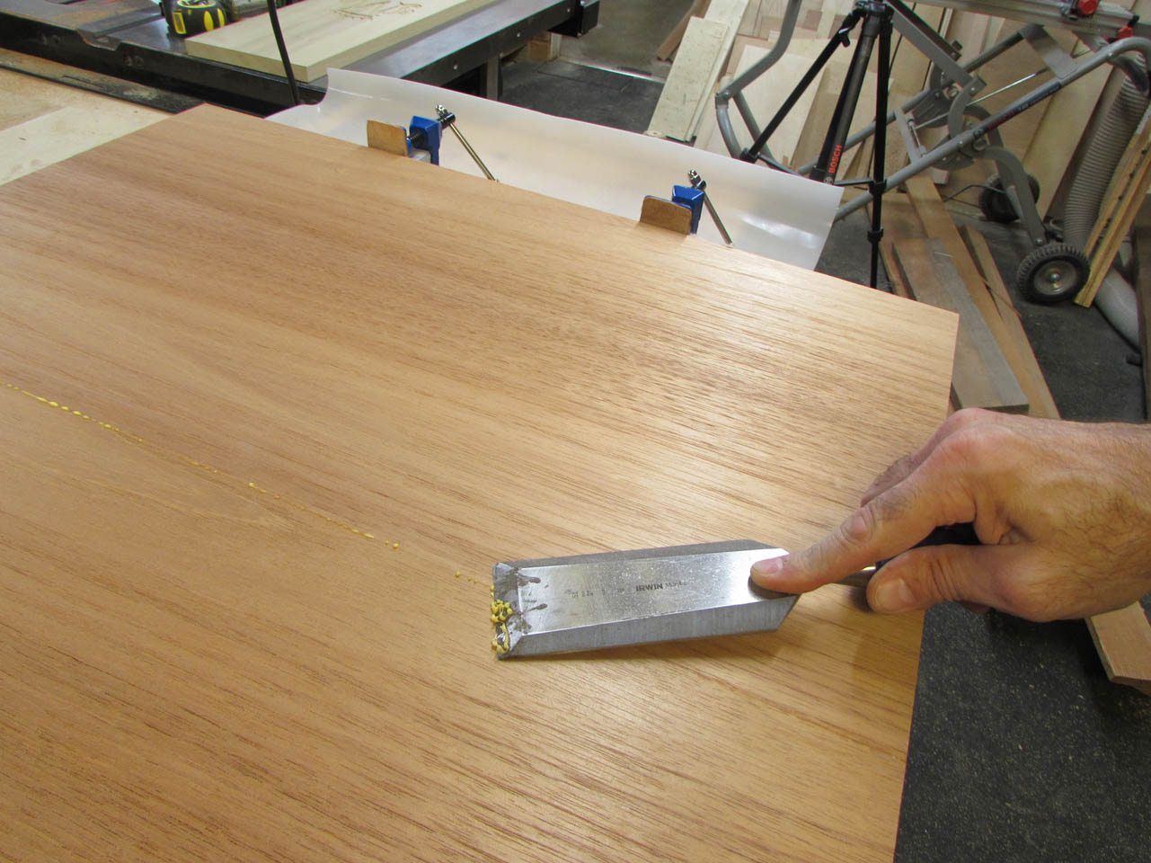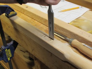 I need to create a shallow mortise so the plate sits flush with the surface. I use my chisels for this operation.