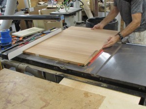 Now that the panel is done, I need to re-saw it up into pieces again. Although, this time they will be the correct size, and because I book-matched the grain really well, it will all look like one piece of wood when it is reassembled.