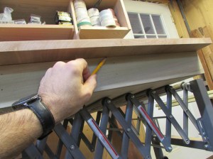 One more thing before I finish up for the night. The vertical board for the cross is supposed to only be 3″ wide and it is currently 6″. The only place that is supposed to be that wide is around the symbol. I set the table saw fence to remove the 1-1/2″ from each side. I also marked the edge of the saw blade, on the fence, so I don’t cut too far.