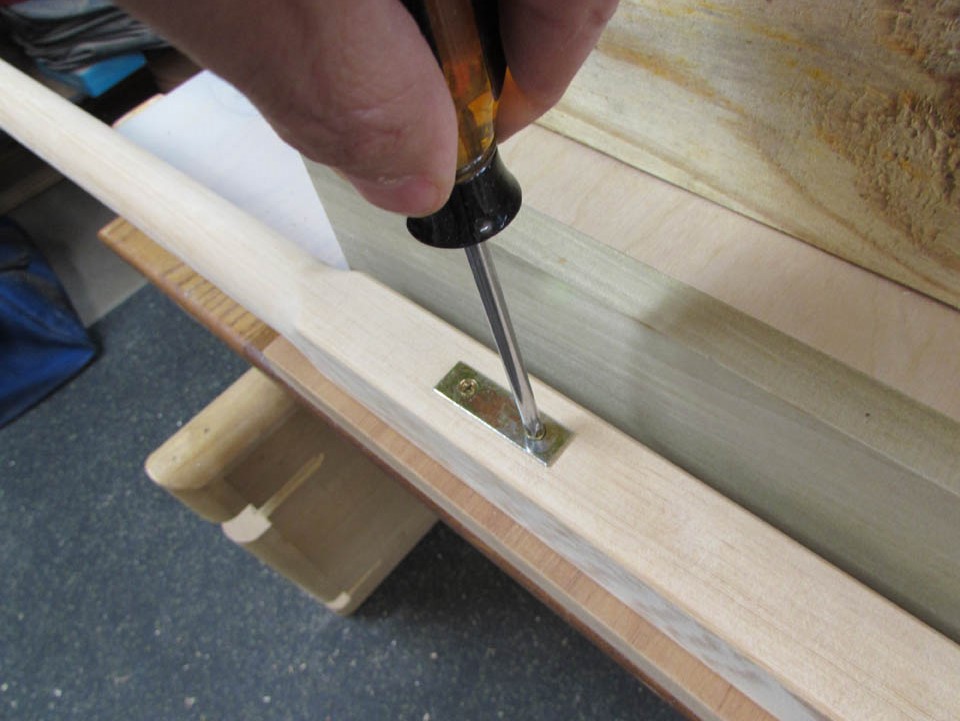 The plate fits snugly into the mortise and I hand-tighten the screws in place.