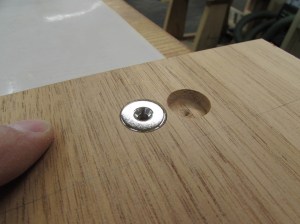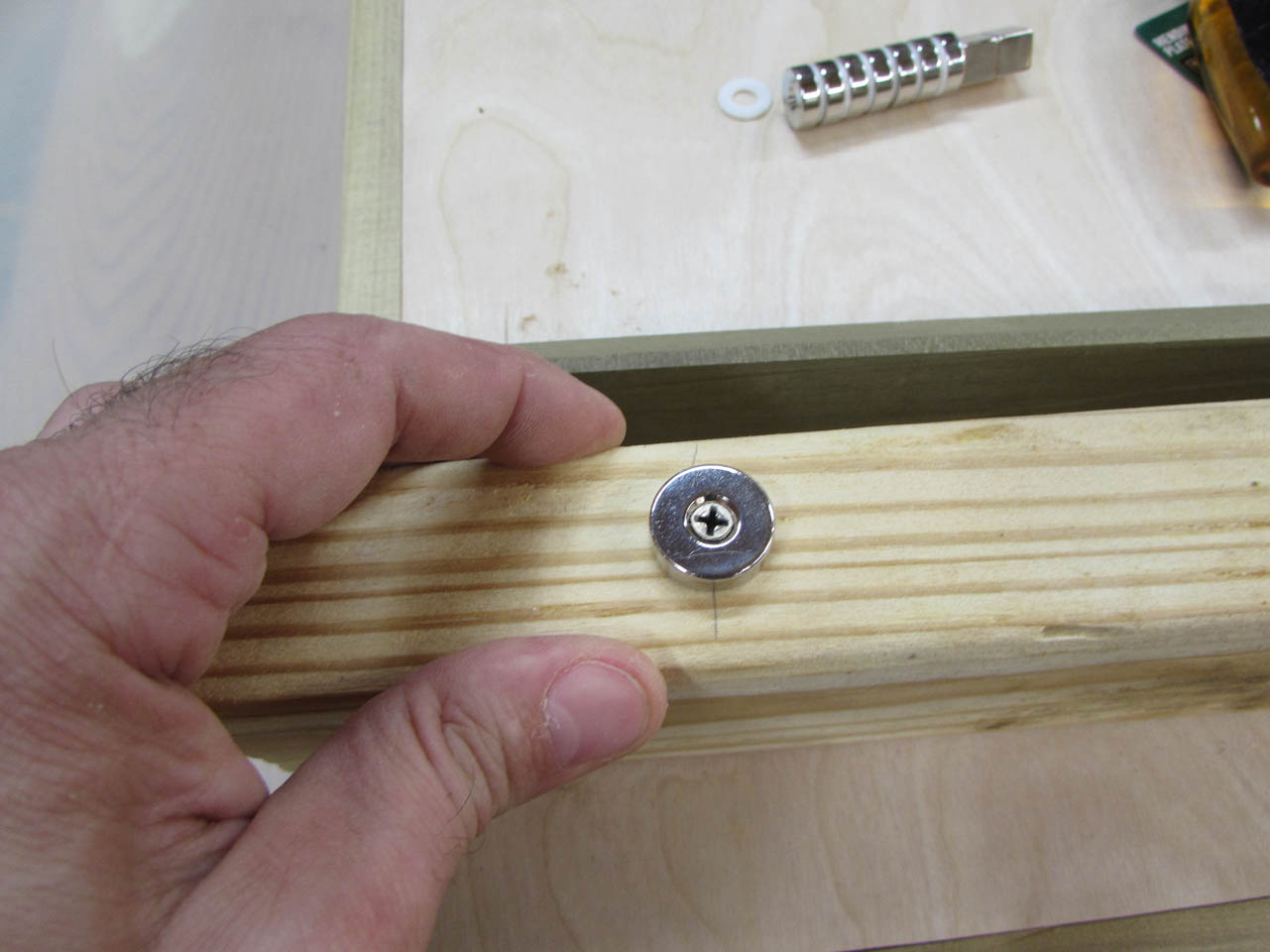 I found a nice location for the steel plates that was in 4″ or so from the end. That will avoid the corner block, on the top, when I have to run screws up through the magnets.