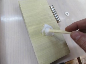 I am using a 2-part epoxy that is designed to stick to both metal and wood, for attaching the magnets.