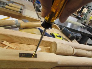 Then, while that is drying, I went back to my workbench to install the steel plates in the poles.