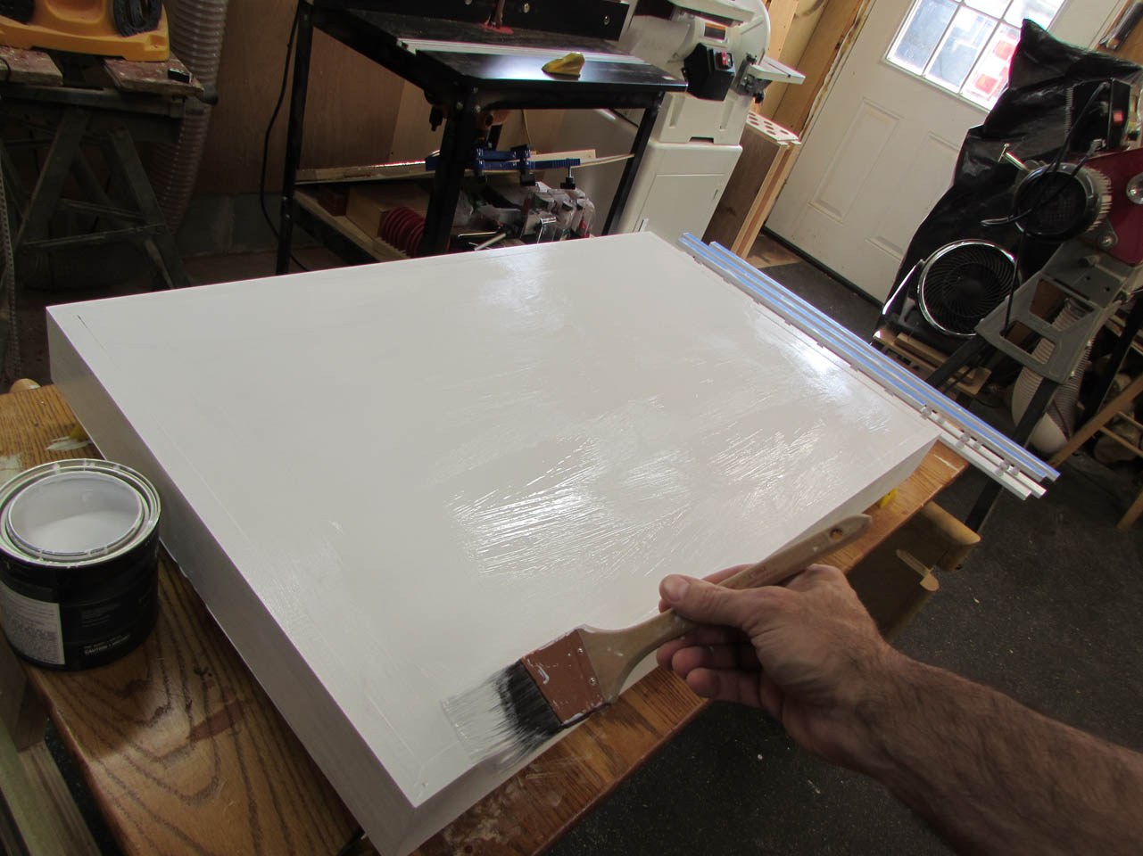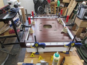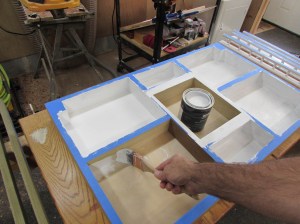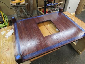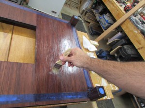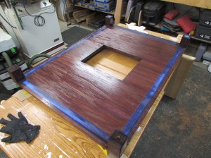 After the rails, I apply one coat to the inside of the base. It really doesn’t need it, but I figured it would not hurt to help prevent moisture infiltrating the wood.