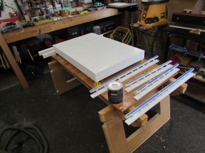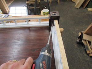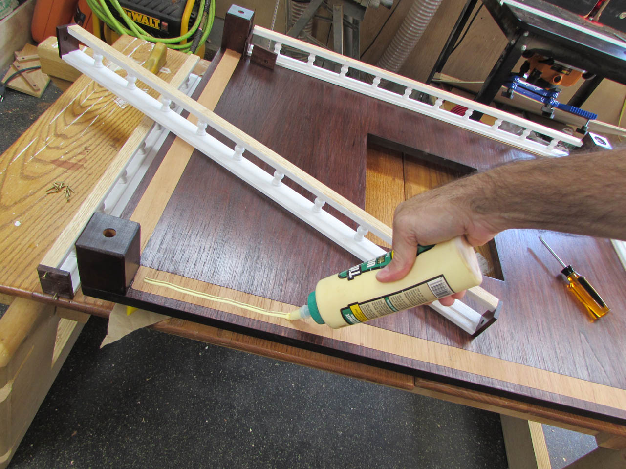 Time to start reassembling all of the end caps on the rails. I had marked each one so it would go back to its original location, but the stain and poly wiped out my marks… So I took my time and got them all back in place.