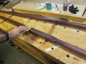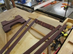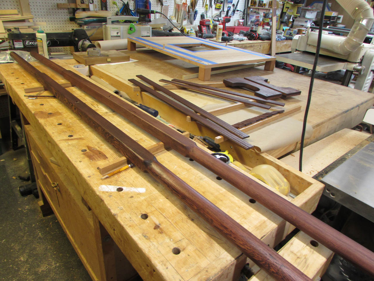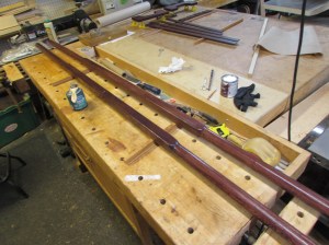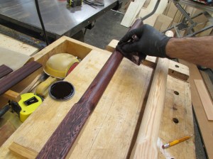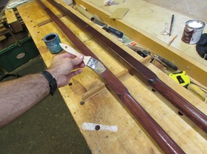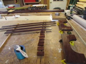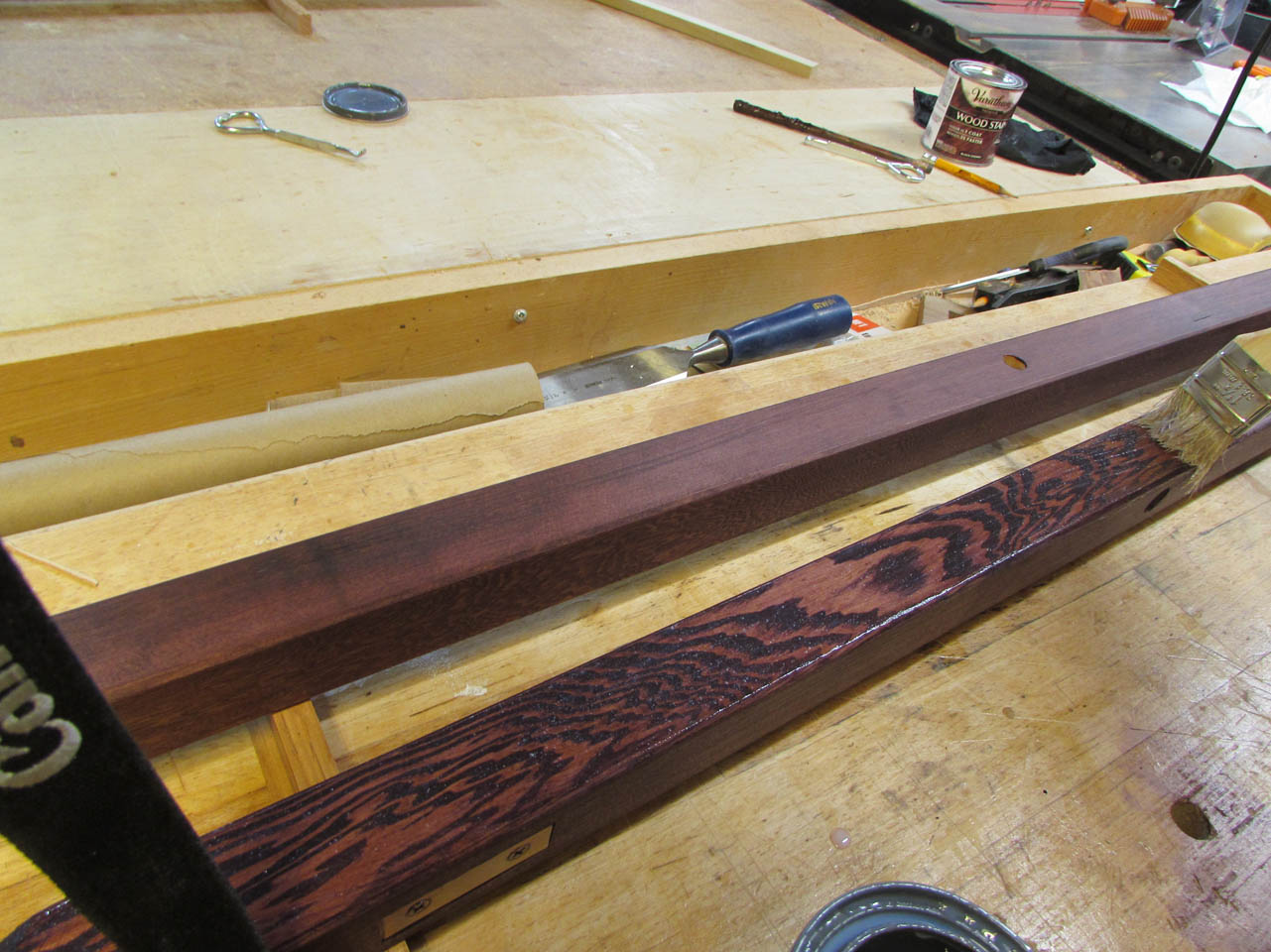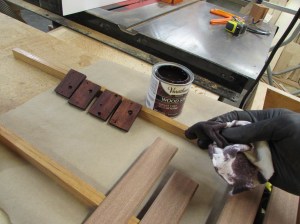 I finished staining all of the Spanish cedar and the sapele parts and left them to dry.