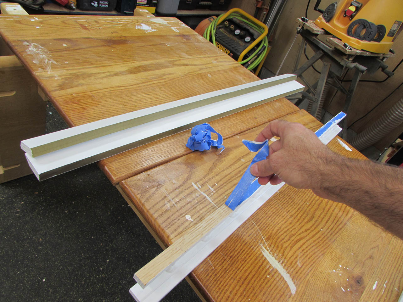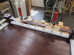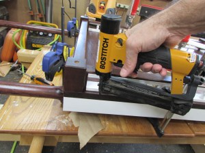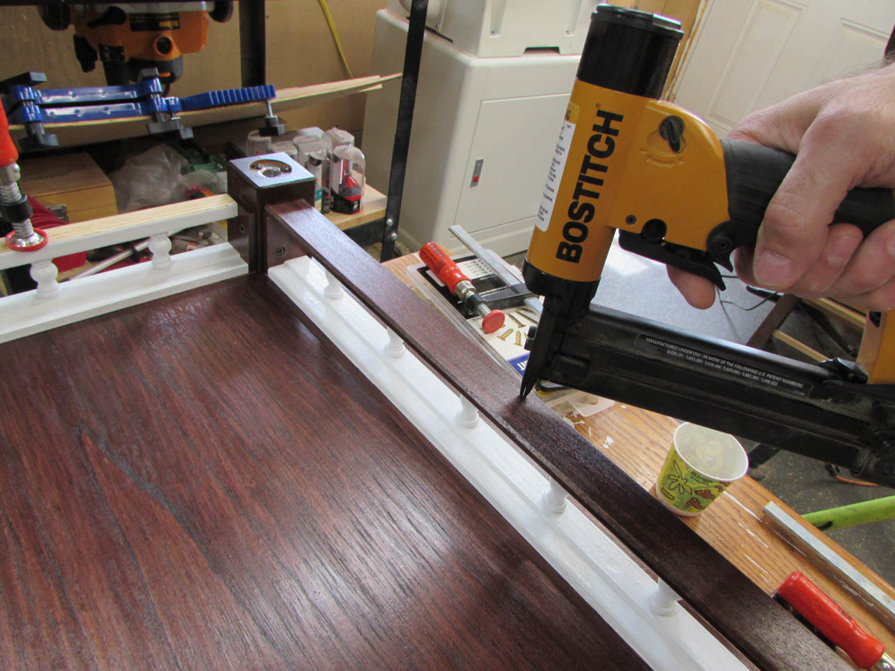 Once those were dry enough, I applied glue to the top of the rails and pinned the rail caps in place.