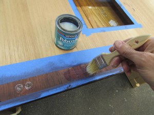 About an hour after the stain was applied, I started applying some water-based polyurethane to the under side of the top. Any problems with the finish in this location will never be seen, so it is a good test location.