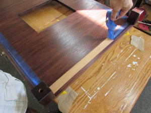 Encouraged by the success staining the bottom area, I finished the top and moved on to the rest of the pieces.