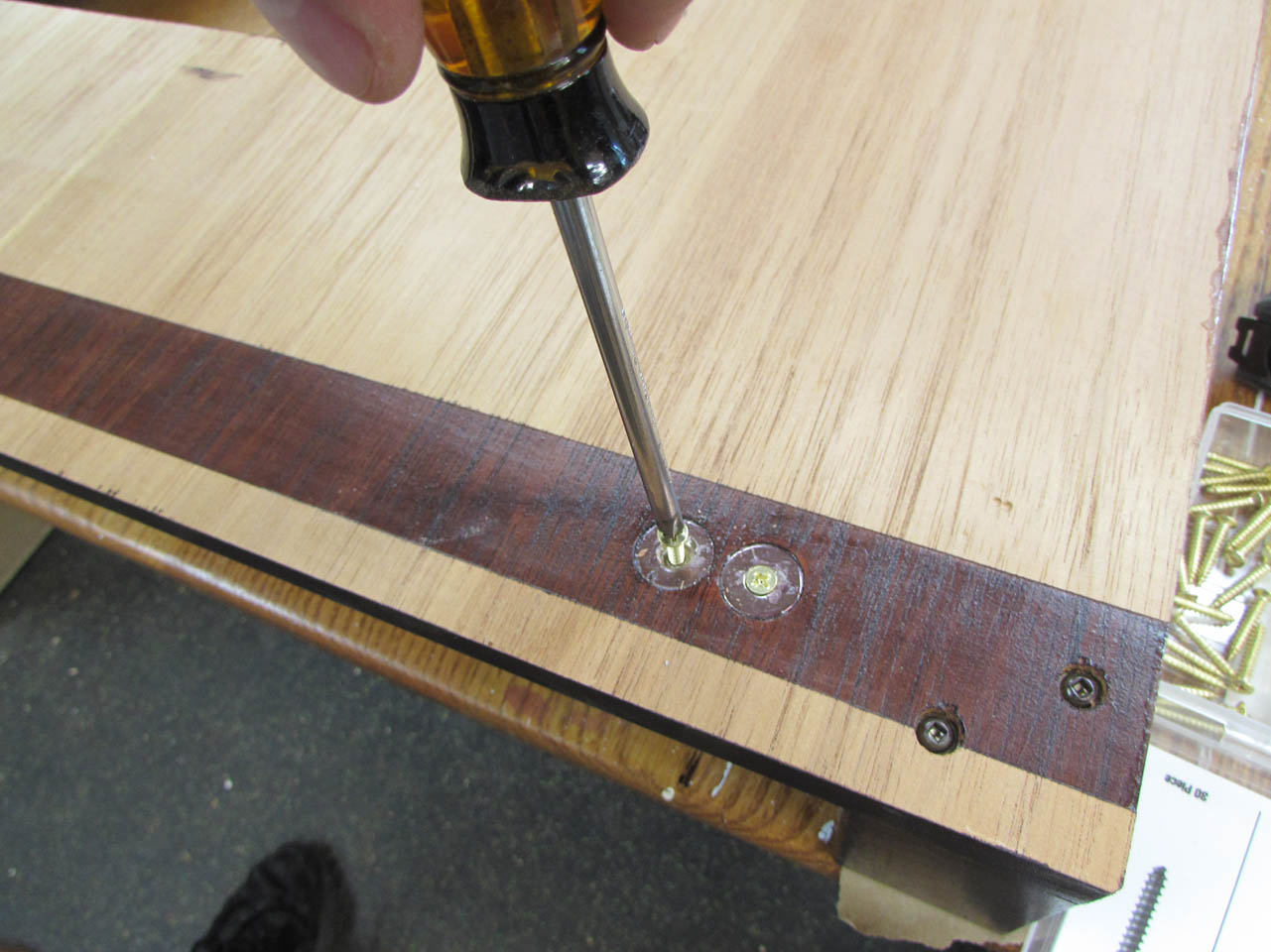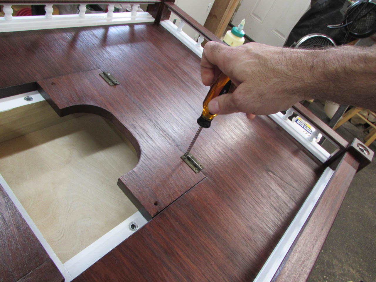 When I know everything is oriented the way it was when I installed the hardware, the first time, I can remove the top and put glue on top of all of the structural ribs, then reinstall the top.