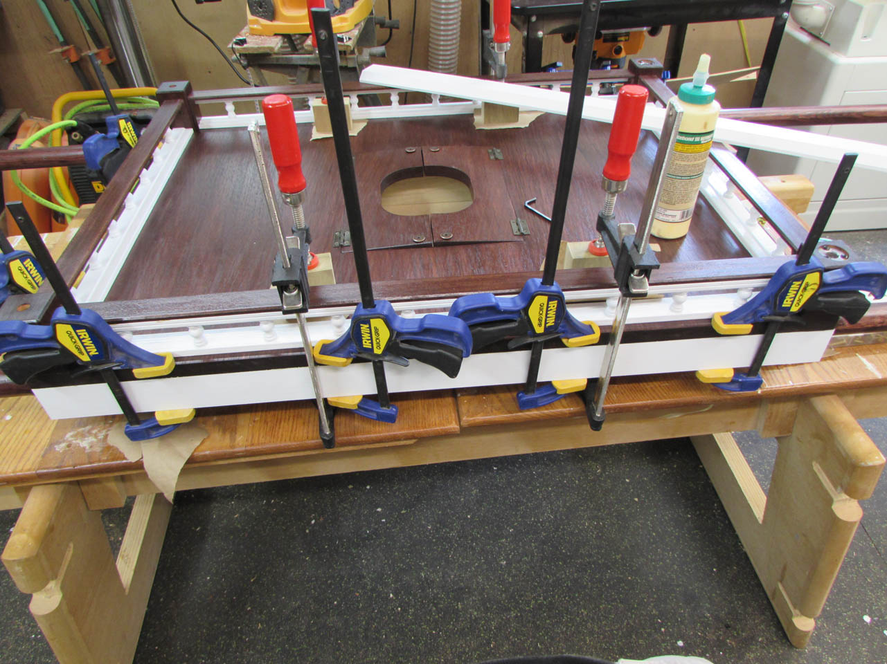 I clamped the top on with some larger clamps that leave me room to insert the poles and also install the side retainers.